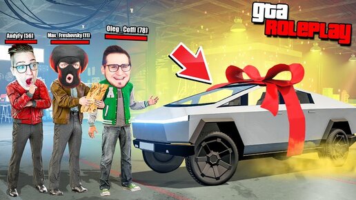 ПОДАРИЛ TESLA CYBERTRUCK ЗА 40.000.000$ МАКСУ ФРЕШУ! ВСЕ В ШОКЕ ОТ ТАКОГО ПОДАРКА! (GTA 5 RP)