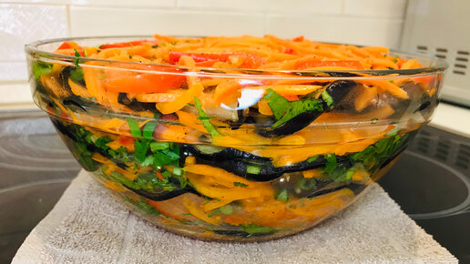 Новогоднее меню. Слоеная закуска из баклажанов и моркови по-корейски. Сочно, остренько, пикантно!