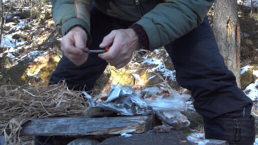 Разводим костёр зимой от ОГНИВО, попытка вторая - удачная. Палки для скандинавской ходьбы - по сопкам. Тумнин - Часть вторая.