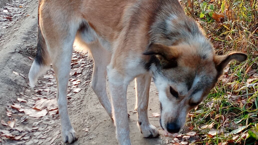 Встретившийся нам "дачный" песик, нетерпеливо ожидая миски еды, дружелюбно махал хвостиком