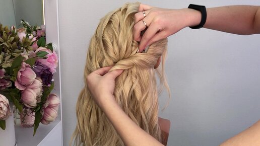 Невероятно красивый высокий пучок всего из двух жгутов! Собранная простая прическа на длинные волосы!