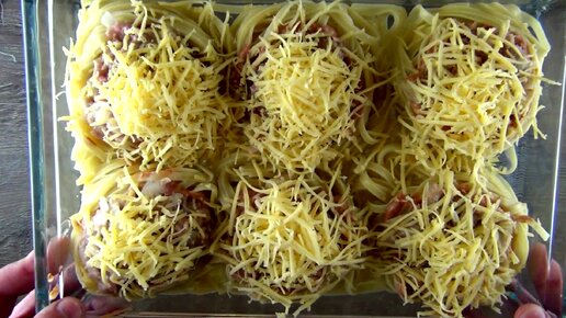 Рецепт гнезда из лапши с фаршем и сыром в духовке