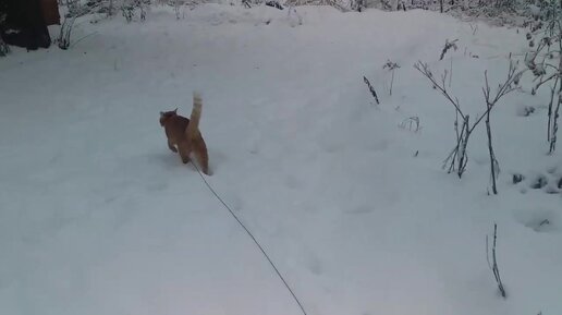 Чудесный зимний день. Кот на поводке