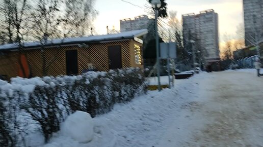 Зима в парке Северное Тушино, часовня смотровая площадка, ресторанный дворик, главный выход днём