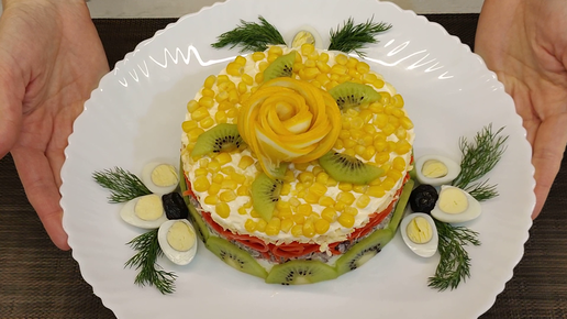 Простой в приготовлении салат, подойдёт, как на праздничный стол, так и для неожиданных гостей .