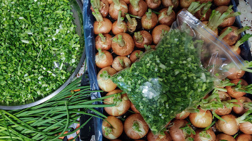 Первый урожай ЛУКА срезала и стала употреблять в пищу.