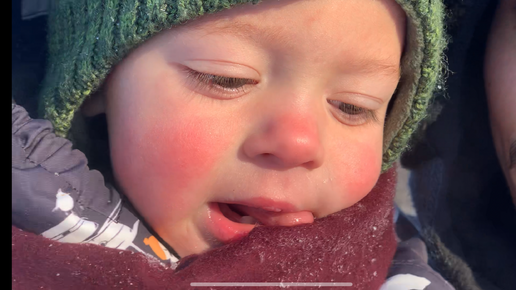 Крошка в полтора года покоряет свой первый снежный склон😃