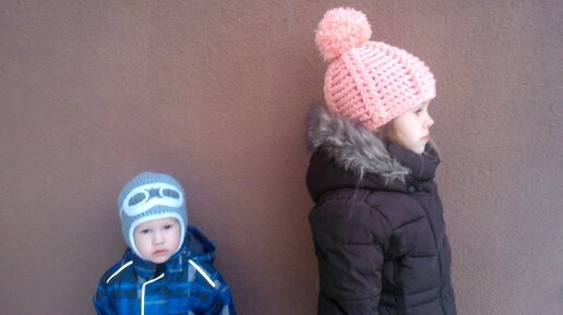 Две Вязаные Детские шапочки крючком Crochet winter children hats