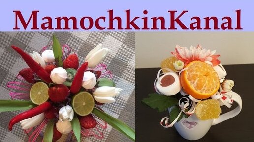 Как делать букеты на 8 марта из фруктов, цветов, конфет, овощей и других сладостей