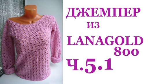 Женский джемпер крючком из Lanagold 800 Ч.5 V горловина полочки