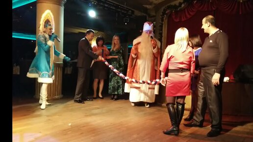На новогоднем корпоративе игры пляски с Дед морозом и со Снегурочкой, было весело