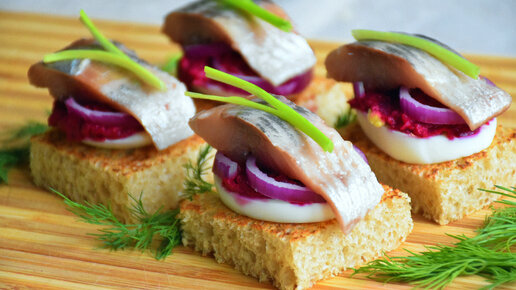 Очень вкусные бутерброды с селедкой (два варианта): не представляю без них Новогодний стол