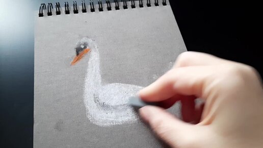Белая пастель и темная бумага. Рисунок - белый гусь