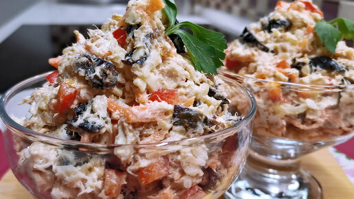 Салат на Новый год. Рецепт с курицей, черносливом и корейской морковкой