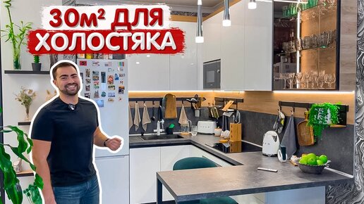 Обзор ОДНОКОМНАТНОЙ квартиры 30м2 для парня. Дизайн интерьера. Ремонт однушки. Белая кухня. Румтур