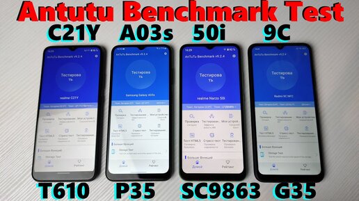 REALME C21Y vs SAMSUNG A03S vs NARZO 50i vs REDMI 9C Antutu Benchmark Score Test