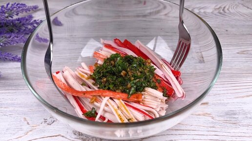 Простая закуска из крабовых палочек. Выручает, когда необходимо приготовить что-то очень быстрое.