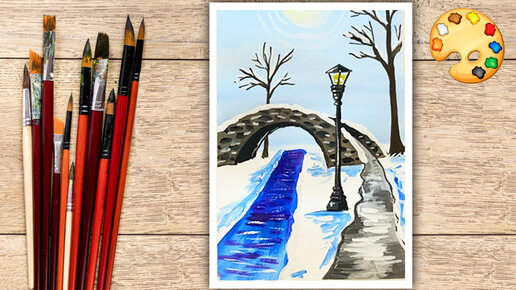 Как нарисовать городской зимний пейзаж. Простой рисунок гуашью