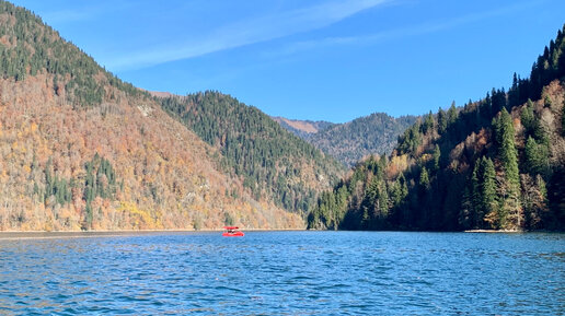Факты об озере Рица в Абхазии | Вид на горы, окружающие озеро с воды