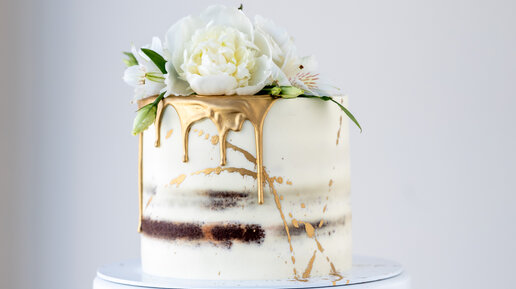 Любуемся декором торта с золотыми подтеками
