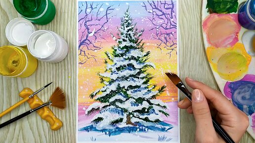 Как нарисовать ёлку гуашью поэтапно. Рисуем гуашью для начинающих