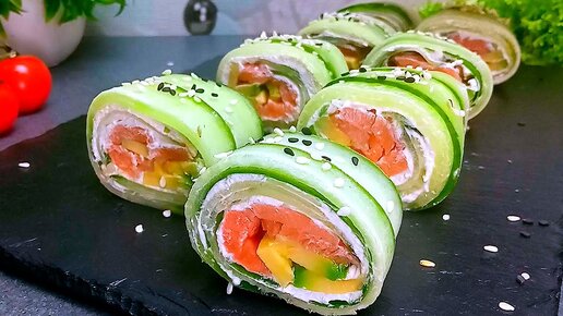 Так ПРОСТО и так ВКУСНО! Закуска на НОВЫЙ ГОД 2022! Роллы из огурца с красной рыбой🎄