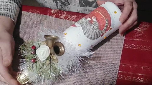 🎄 Делаем шикарную бутылку шампанского для новогоднего стола! Декупаж для новичков, подробный мастер класс