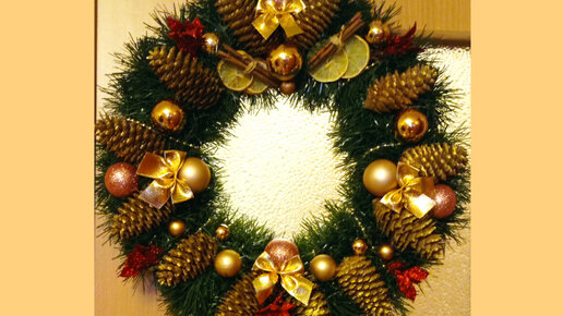 УРА!!! ПОЛУЧИЛОСЬ! Домастерили НОВОГОДНИЙ ВЕНОК! Очень красивый получился!!!