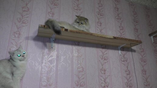 Котенок Кося спит на полке, а Джон пришел его проверить.