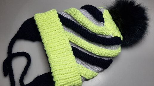 Теплая шапочка спицами.