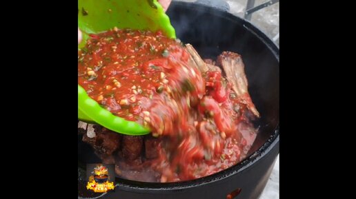 Томленая баранина в томатном соусе в казане
