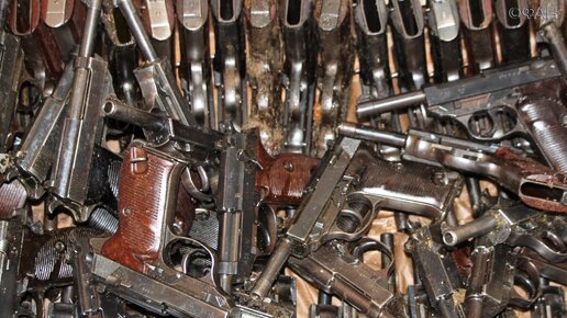 На территории базы стояли скирды трофейного оружия высотой в 3-4 метра. Их разбирали около трех лет