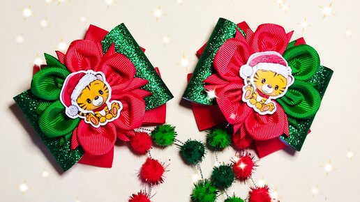 Новогодние бантики канзаши/ символ года🐯 2022/ бантики из лент