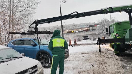 Так работают эвакуаторы в Москве! Под снегом не видно разметки! Эвакуаторщики этим пользуются! Увезли машину за 2 минуты!