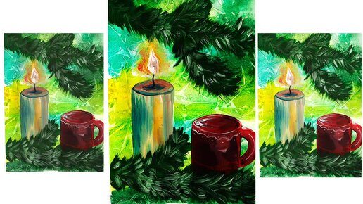 Рисуем Новогодний натюрморт. Рисуем свечу и кружку. Нарисуем ветку ели.