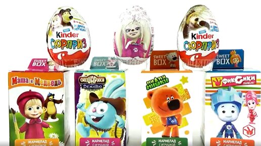 Киндер сюрприз Маша и медведь, Барбоскины, Свит бокс Фиксики, Смешарики и Ми ми мишки