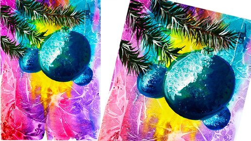 Нарисуем новогодние шары на ветке. Рисуем новогоднюю открытку. Новогодний рисунок.