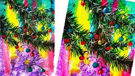 Нарисуем гирлянду на елке. Новогодняя открытка. Новогодний рисунок.