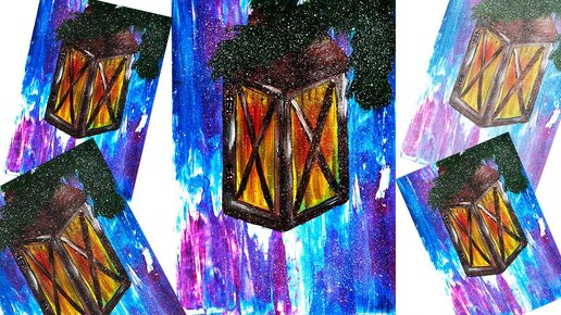 Нарисуем фонарь. Рисуем зиму гуашью. Правополушарное рисование.