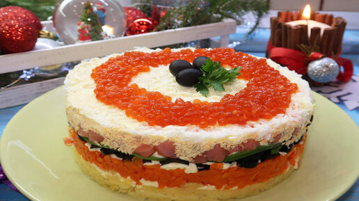 Салат Царский. Очень вкусный салат с красной рыбой и икрой. Новогодний стол 2022