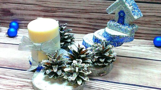 Новогодний подсвечник из шишек и спилов своими руками