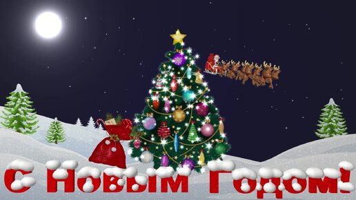 С Новым Годом! Футаж с Дедом Морозом на санях и елочкой.