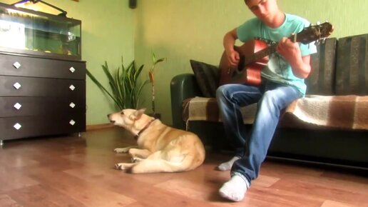 Собака подпевает хозяину. Потрясный голос. Часть 2
