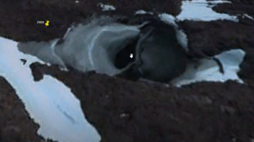 Антарктида. Вход в подземелье, размеры поражают. Снежный столб, возможно древние руины здания, зеленый лед и необычные озера.