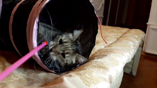 "Мама Лена, неси мышку-удочку, играть будем!" Кот Масик решительно настроен на игру-охоту