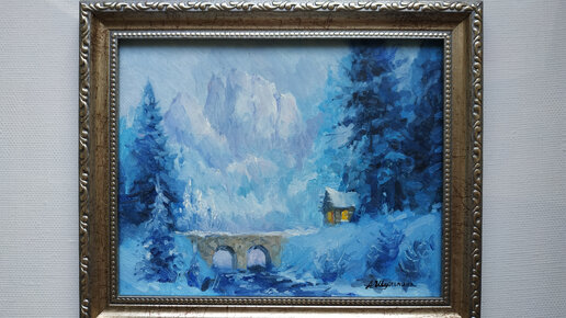 Пишем картину к Новому году. Как написать маслом снег. Зимушка