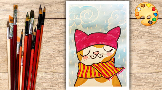 Как нарисовать кота в шапке. Пошаговый урок рисования для детей