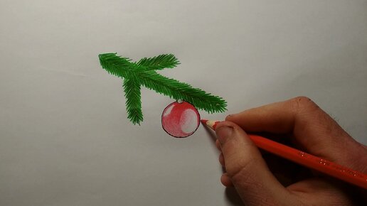Рисуем Еловую ветку с елочной игрушкой на Новый год
