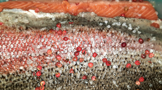Только перед съёмкой видео разрезали форель и нам снова повезло - ура-а-а, икра!!!! 😃