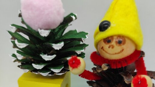 2 простые поделки из шишек для детей к Новому году